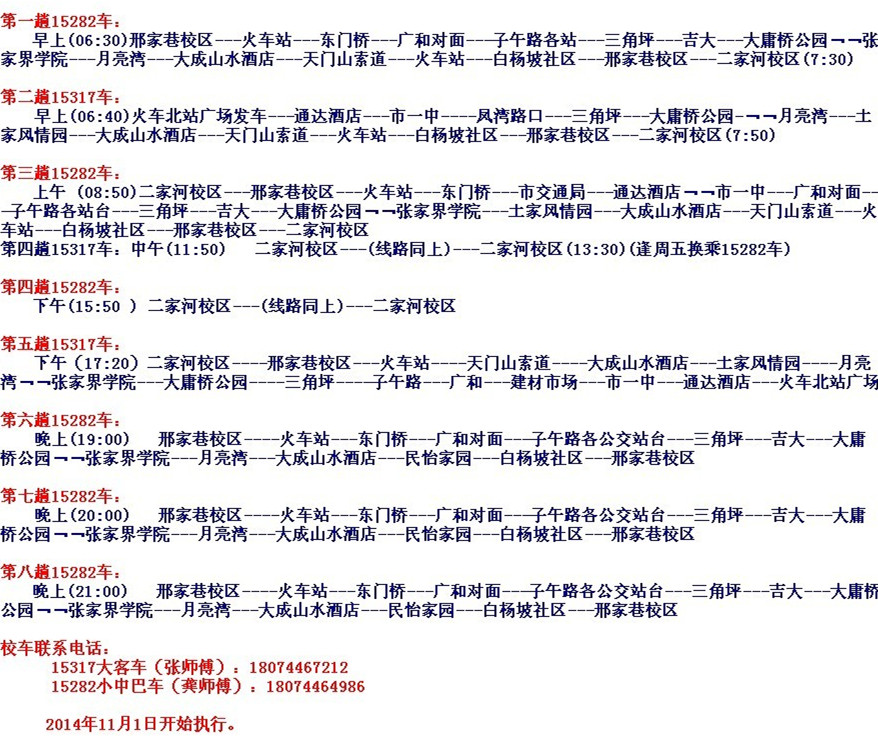 冬令時(shí)校車循環(huán)接送路線及發(fā)車時(shí)間