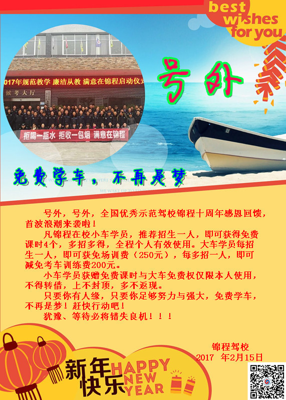 全國文明誠信優(yōu)質(zhì)服務示范單位錦程駕校十周年校慶活動首波感恩回饋大潮來襲啦!您還在等什么呢?